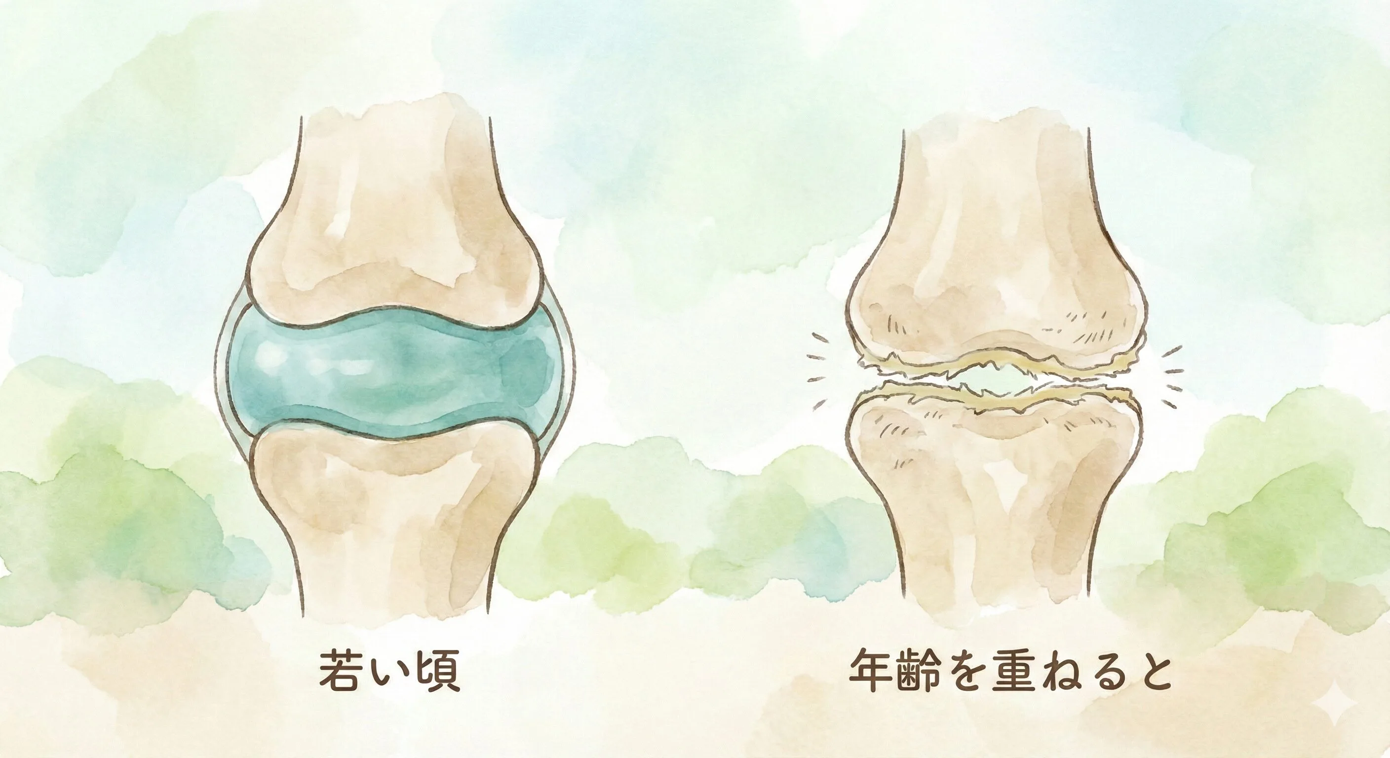 これは加齢によって軟骨成分が減少し、クッション機能が低下することが一因とされています。
