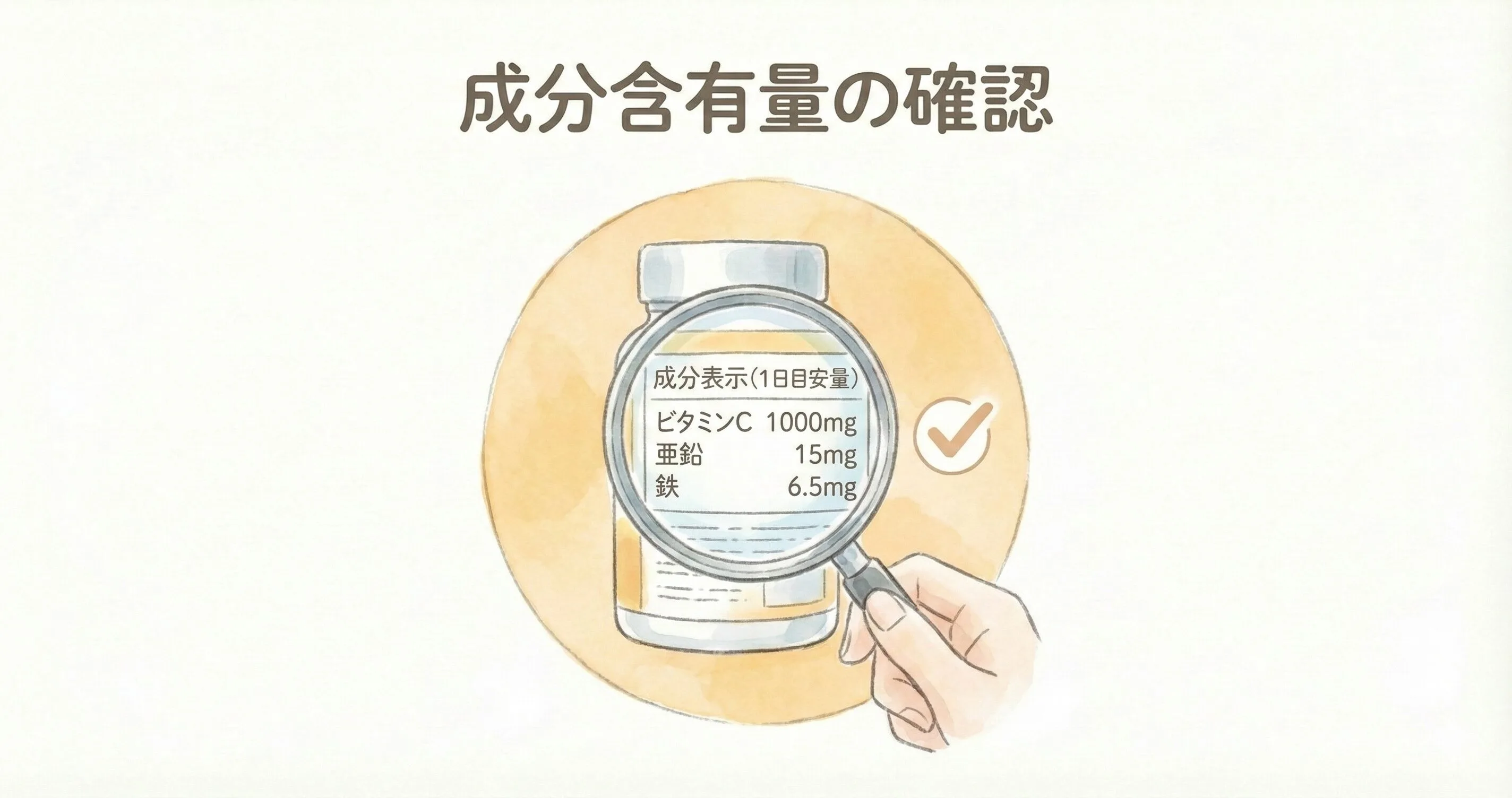 サプリメントを選ぶときは、成分名だけでなく含有量も確認することが大切です。